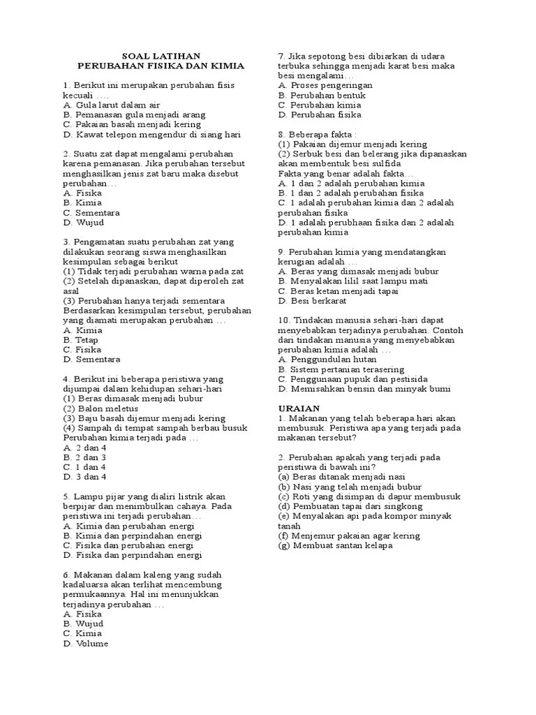 Perubahan zat (pelajaran ipa smp/ mts kelas vii) ✓ 1. Soal ipa kelas 7 perubahan materi. Atau soal ulangan ipa kelas 7 semester 1 dan kunci jawaban. Serupa dan berbagai kemungkinan perubahan wujud atau karakteristik lainnya. Contoh soal materi perubahan zat.